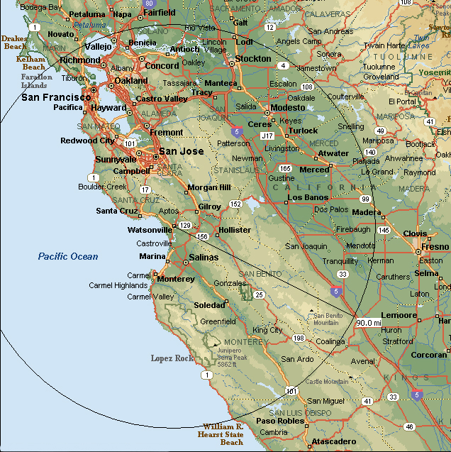 rural areas within 90 miles of Watsonville airport. These cities include